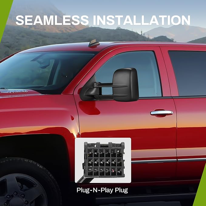 - Easy to install: just simply connect the plugs of the trailer towing mirror to the corresponding power cord, no drilling or modifications required(professional installation would be highly recommended)