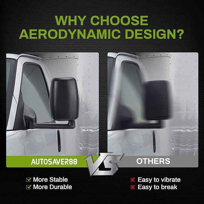 AUTOSAVER88 Right Passenger Side Mirror Towing Mirror Compatible with 2003-2019 Chevy Express GMC Savana 1500 2500 3500, Manual Folding, Adjustable, Black Housing