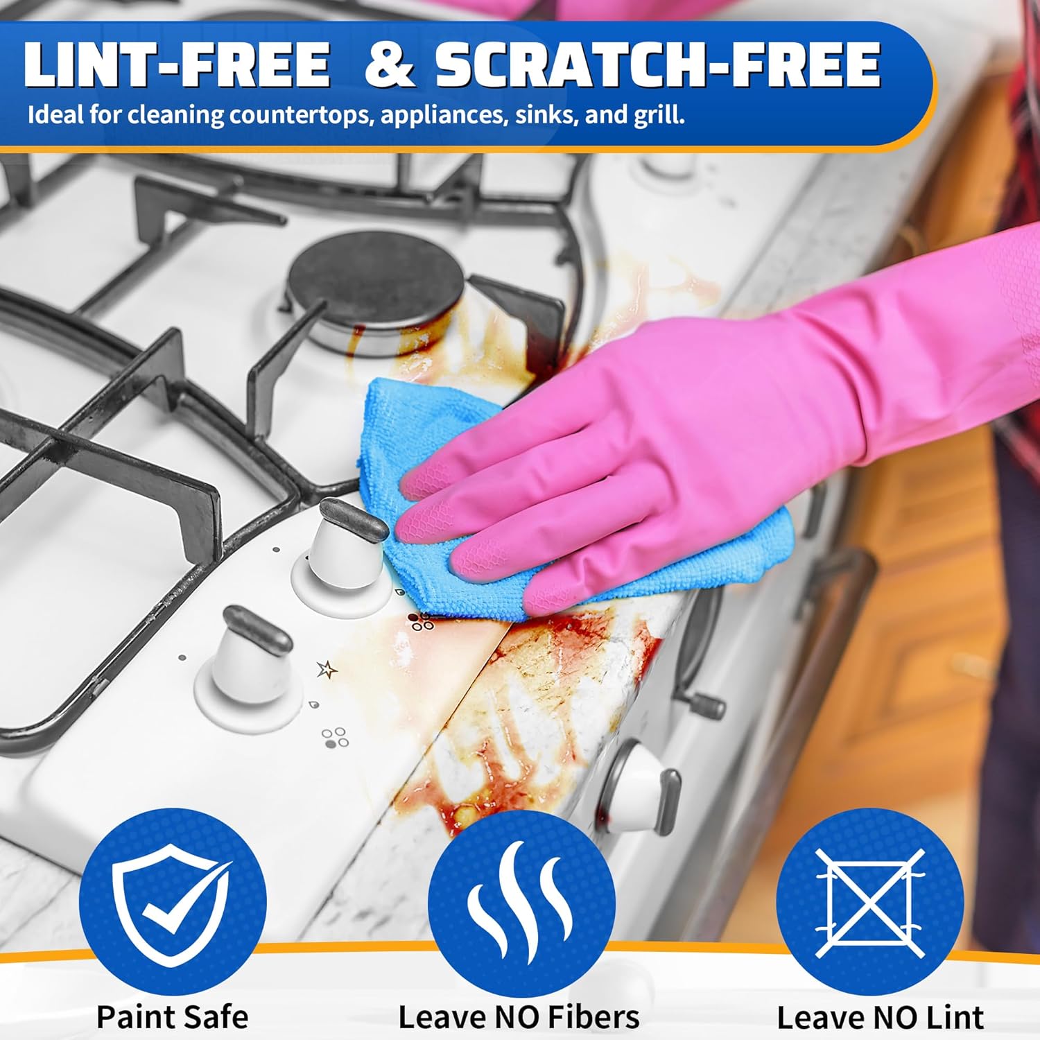 - NO LINT & NO SCRATCH CLOTH: These microfiber towels ensure each delicate paint job is protected. The color wouldn't fade, and no loose strands of fiber hang off the towel. There is no chance of leaving behind any scratches or lint on the cleaning area, delivering a lint-free, streak-free cleaning experience. Perfect for cleaning up mess spills, removing grease and oil, and wiping down surfaces.