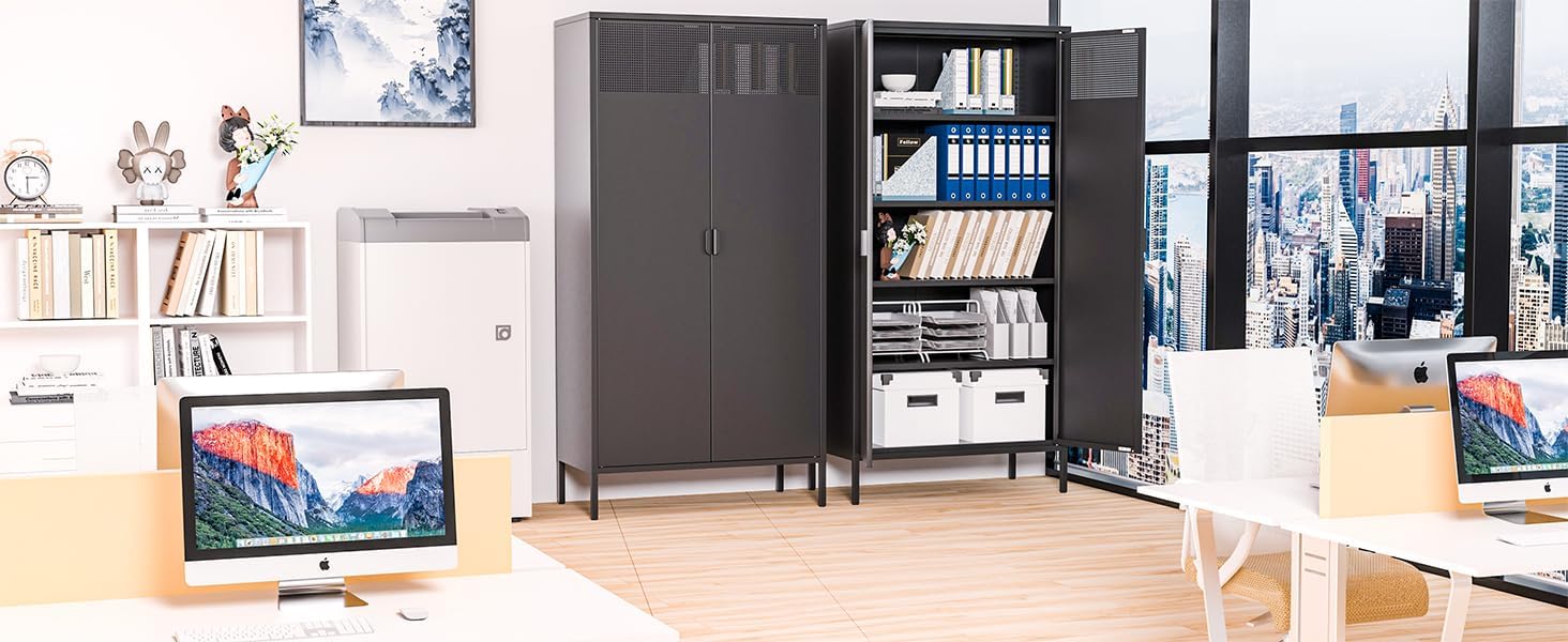 - Versatile Organization: With 4 adjustable shelves, 2 flat panel doors, and ample interior space, this cabinet offers versatile storage solutions for home offices, garages, workshops, or any room requiring organized storage.
