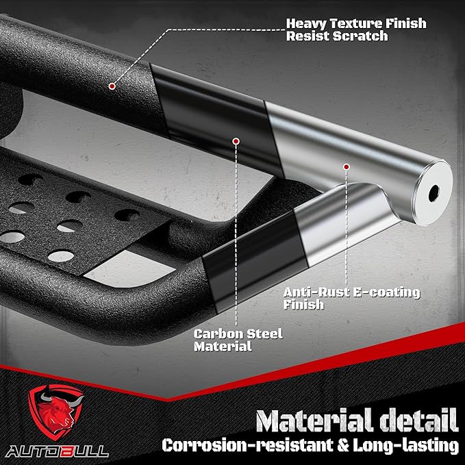 - Safety: AutoBull side steps offer an extra step and secure footing when entering or exiting your vehicle, reducing the risk of slipping or falling.