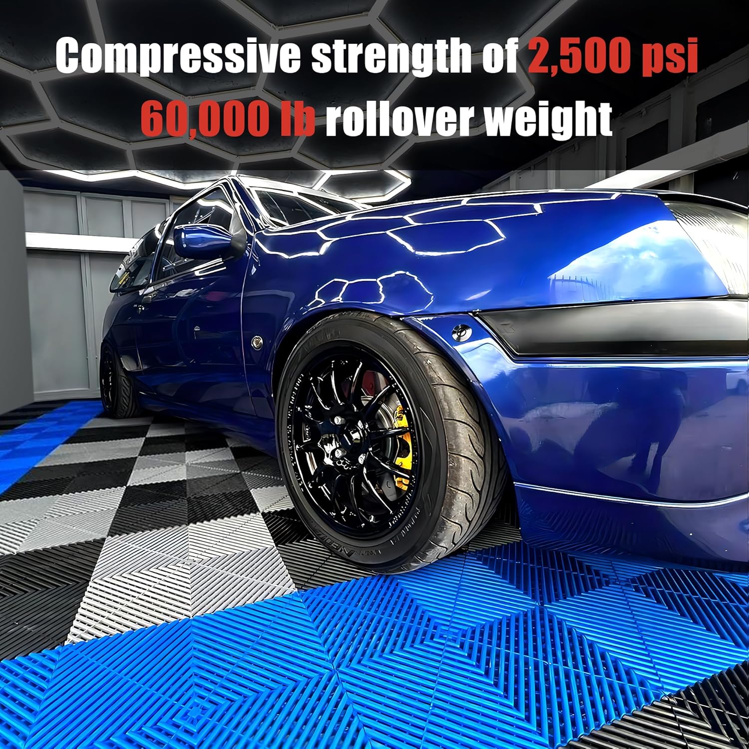 15.7"x15.7" Garage Flooring Tiles, Non-Slip Interlocking Plastic Garage Floor Mat, Garage Organization & Garage Storage, Vented Pattern (Blue, 25PCS)