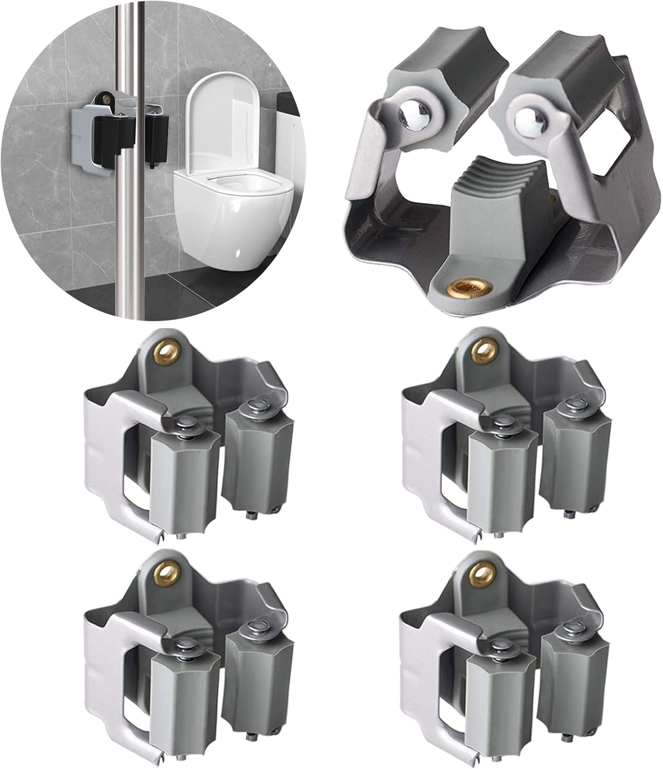 3-H 4 Pack Mop and Broom Holder Big Size Hanging 1 KG Extra,Broom Hanger Wall Mount for Hanging and Organizing Shove Rake Yard Tools in Shed Kitchen Laundry Room Bathroom Garden(grey)