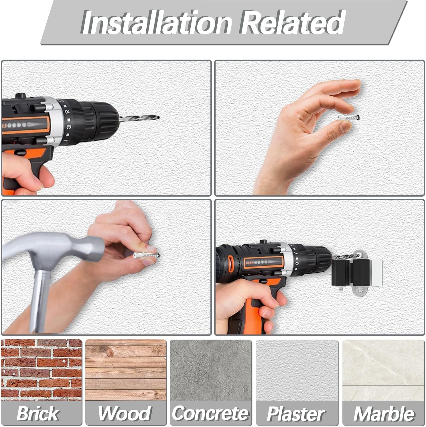 - Easy to install - You can easily install 3-H broom holder wall mount in a few seconds, This broom hanger wall mount is suitable for all types wall, no matter smooth surface or rough surface. Such as:marble, wood, metal, ceramics, ceramic tiles, acrylic, plastic surface, non-paint walls, cement, wallpaper, plaster, paint, waxing and brick wall, so please choose your ideal installation location.