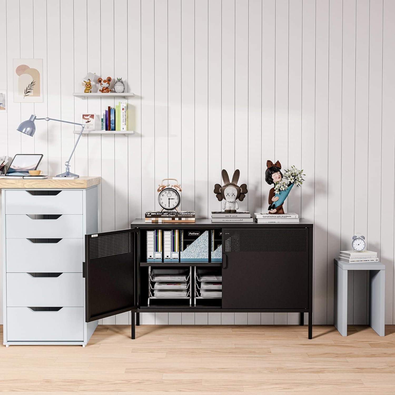 - Steel Construction: This metal storage cabinet is crafted from durable steel material with an electrostatic powder coating, ensuring long-lasting use at home or in the office.