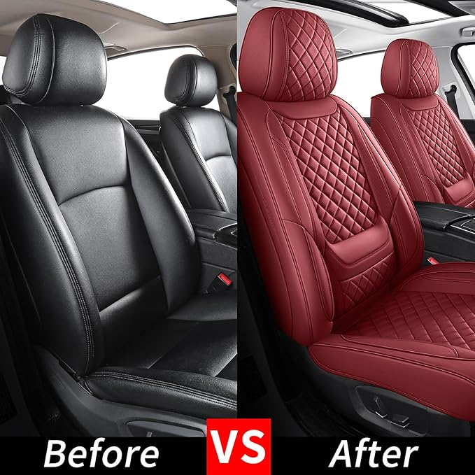 Front Seat Covers for Cars Breathable Leather Seat Covers Waterproof Seat Protectors Universal Fit for Most Automotive Cars SUV Trucks Van (Red, Front Pair)