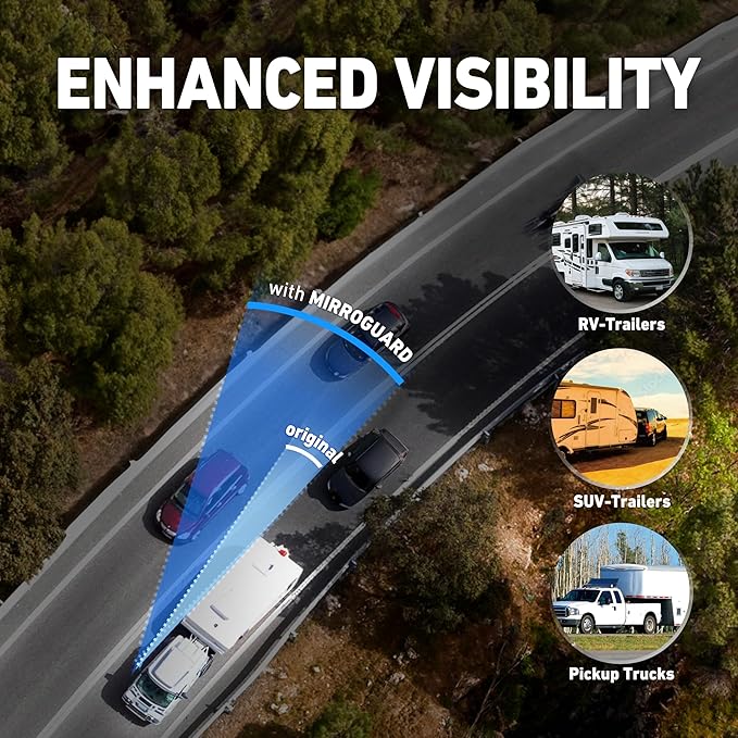 - Enhanced Visibility - These towing mirrors provide extended visibility for safer towing. Perfect for RVs, trailers, and vans, they offer a clear view of the rear and sides of your vehicle, making it easier to monitor your trailer.