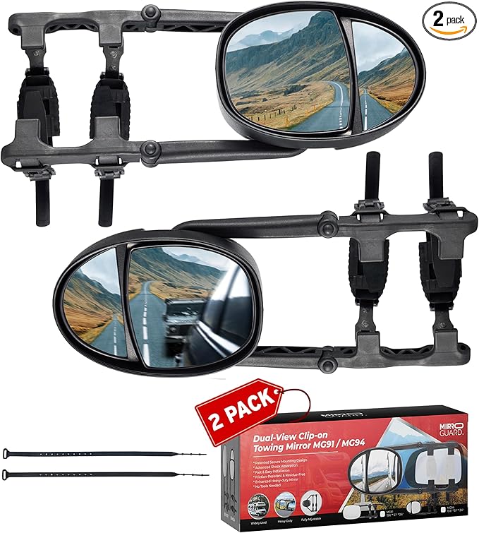 - Easy Installation - With its clip-on design, the MirroGuard towing mirrors can be easily attached and removed as needed. There's no need for any special tools or complicated instructions. Simply clip them on your existing side mirrors and you're ready to go.