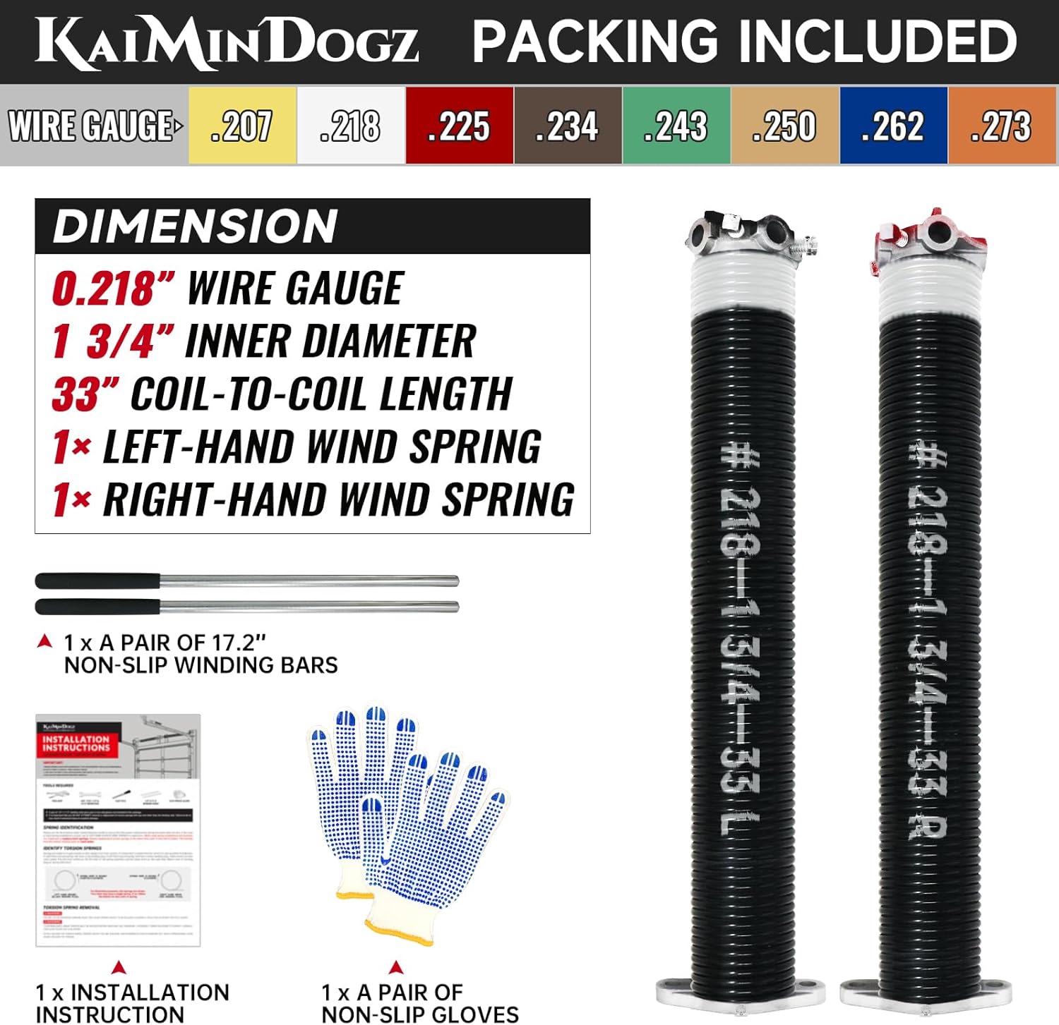 - SIMPLE INSTALLATION : Use KaiMinDogz high quality garage door torsion springs to replace old broken garage door springs.Having the experience of installing torsion springs can save you a lot of money.