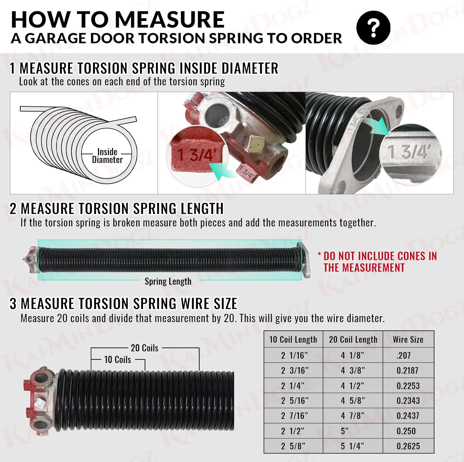 - SIMPLE INSTALLATION : Use KaiMinDogz high quality garage door torsion springs to replace old broken garage door springs.Having the experience of installing torsion springs can save you a lot of money.