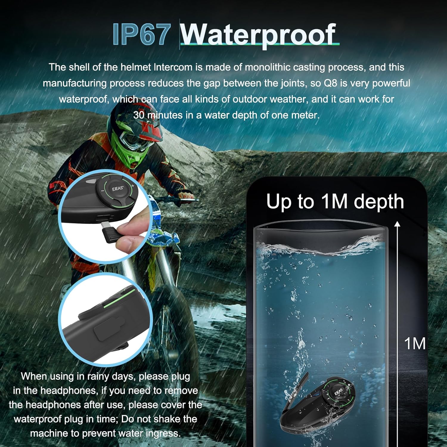- šš§š¤šššØšØšš¤š£šš” waterproof, dustproof, windproof, and noise reducing-the speaker emits high -quality stereo sound, and can communicate clearly even at speeds of 140 yards per hour and 80 miles/h. Equipped with IP67 waterproof rating, it is not afraid of rainy days and can even work for 3 hours underwater for one meter. Provide communication guarantee for your professional cycling events