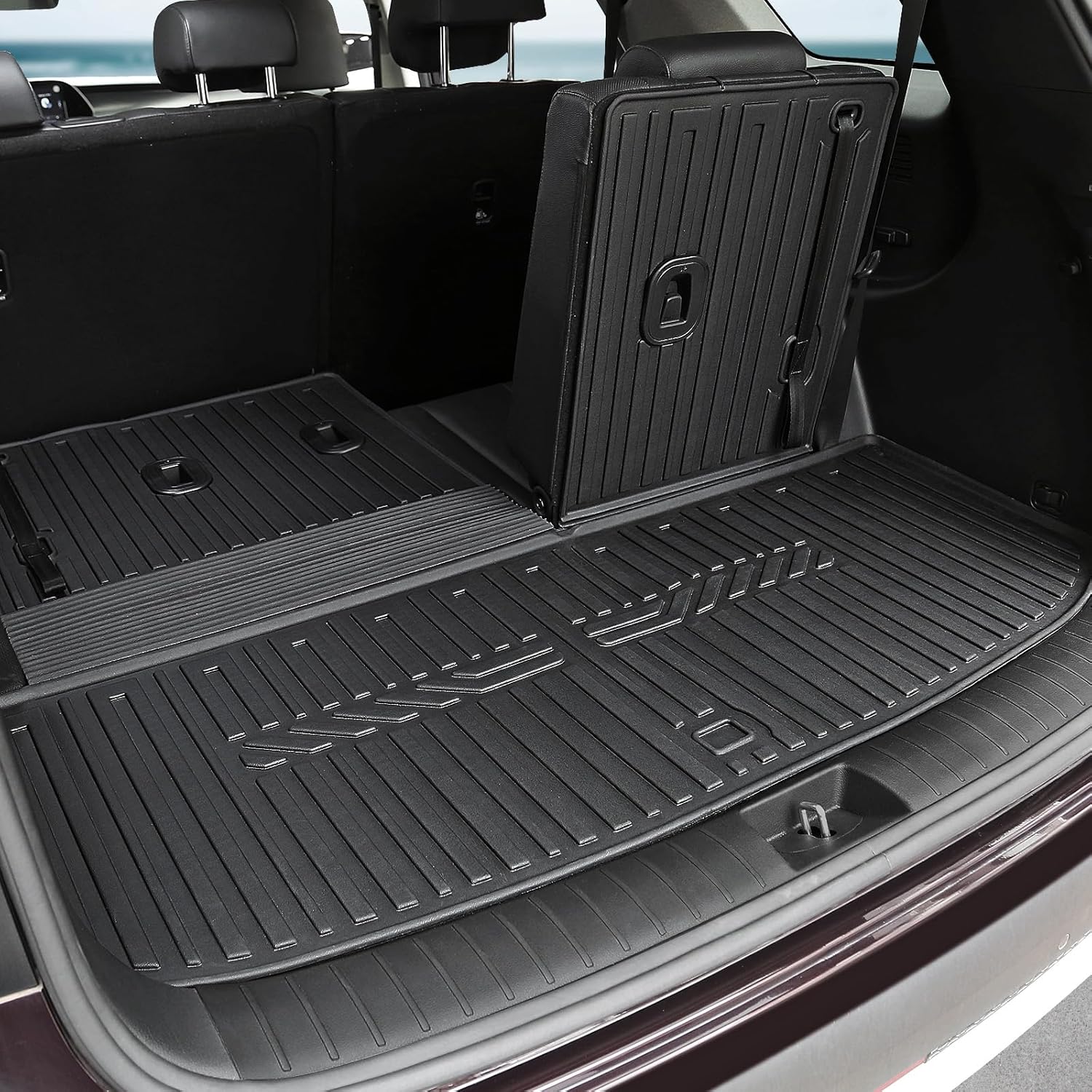 - Upgraded Design: Cargo mat with 2 and 1 design allows you to adjust the seat easily; extended floor mats covered the full isle way to the 3rd row