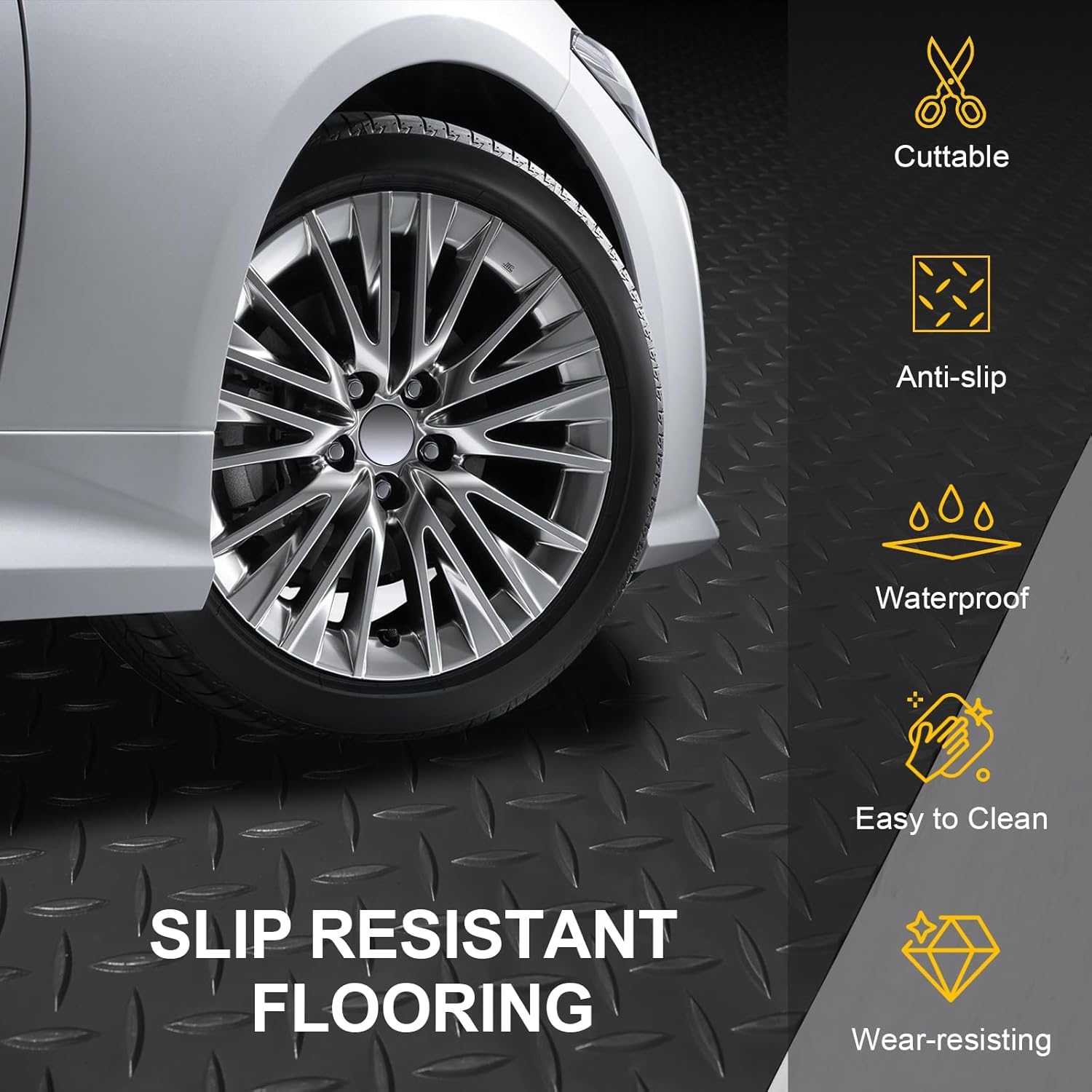 Garage Floor Mat 2.8mm Thickness PVC Garage Flooring Roll Diamond Plate Floor Mats for Garage, Workshop, Gym, Golf Cart Parking or Trailers (Black, 7.5 x 20 FT)