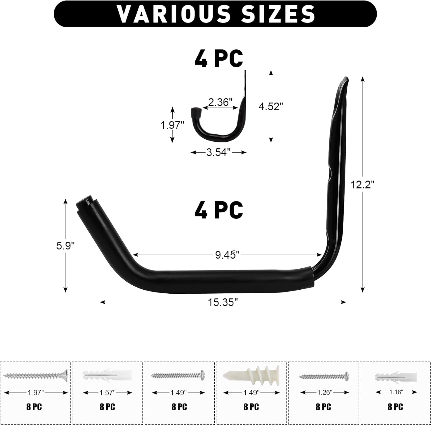 - WIDE VARIETY OF USES - 15" Heavy-duty large wall hooks are ideal for hanging a ladder, bike, chair, shovel, stroller, hose, and other objects found in garages, gardens, and homes. Not only do they help you save space in your home, but they also offer a wide variety of uses.