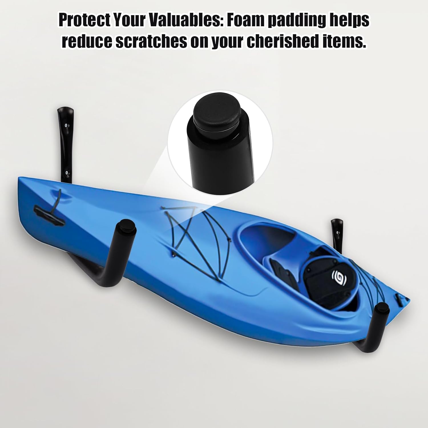 KURUI Heavy Duty Kayak Storage Rack, 100 LB (15") Wall Mount Hooks for Hanging Indoor/Outdoor, 8 Pack Large Garage Hooks for Ladder Kayaks Surfboards, Black Organization Hangers, Kayak Accessories