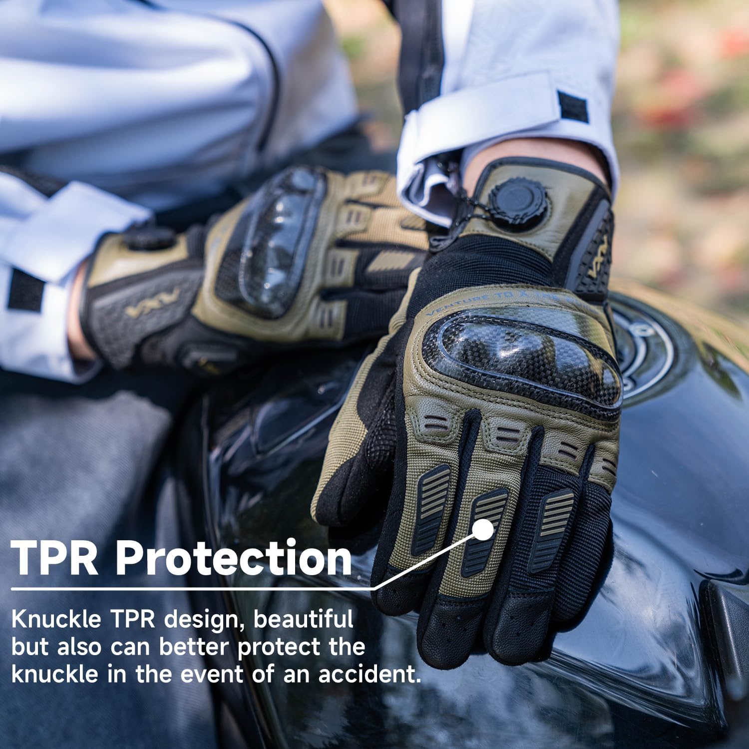 - Ultimate Safety and Comfort - VXW high protection motorcycle golves for man is made of soft and breathable suede and leather with air hole, full-body ergonomic design, super easy to take on and off. The gloves joints are equipped with ultra-hard carbon fiber protection and TPR protection to protect your knuckle, the palm of the gloves is designed with the silicone anti-slip increasing the friction when gripping.