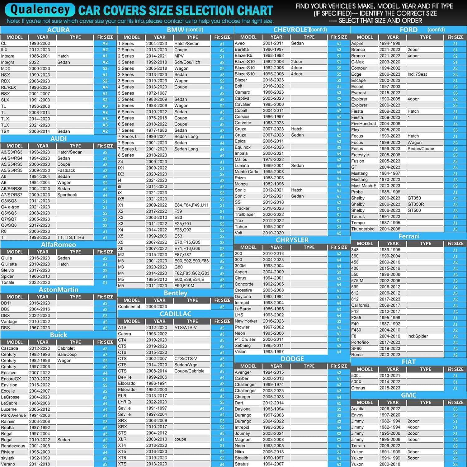 - ăFull size A4ă: Universal fit for sedan/coupe which length is 199 To 208 inch (NOT FOR SUV and models without a roof). Suitable for Sedan Dodge Charger/Challenger, Lincoln Mkz/Mks/Continental, Jaguar XJ/XF, Toyota Avalon/Mirai, Chrysler 300, Audi A7/A8, Tesla Model s, Hyundai Genesis, BMW 7 series, Mercedes-Benz S-Class, Ford Taurus, Buick Lacrosse/Lesabre, Lexus Ls, Acura TL, Volvo S90, Kia Cadenza,Cadillac CT5/CT6/CTS/DTS/STS/XTS/Seville/Deville/Eldorado etc.