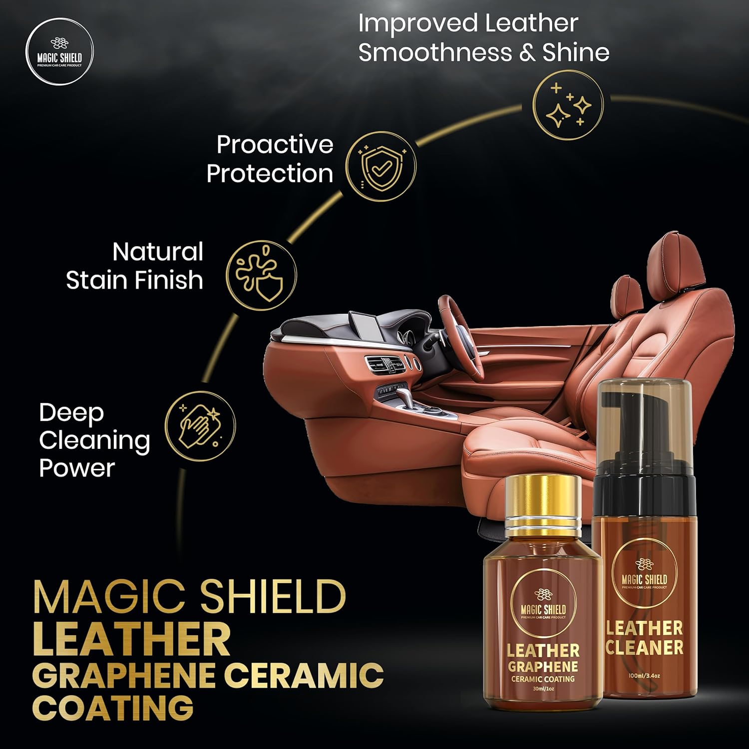 - ๐ก๏ธ Advanced Leather Protection โ The leather shield ceramic coating protects leather against dirt, grime, and moisture, preventing cracking and fading. Achieve long-lasting softness and shine with nano technology and UV resistance.