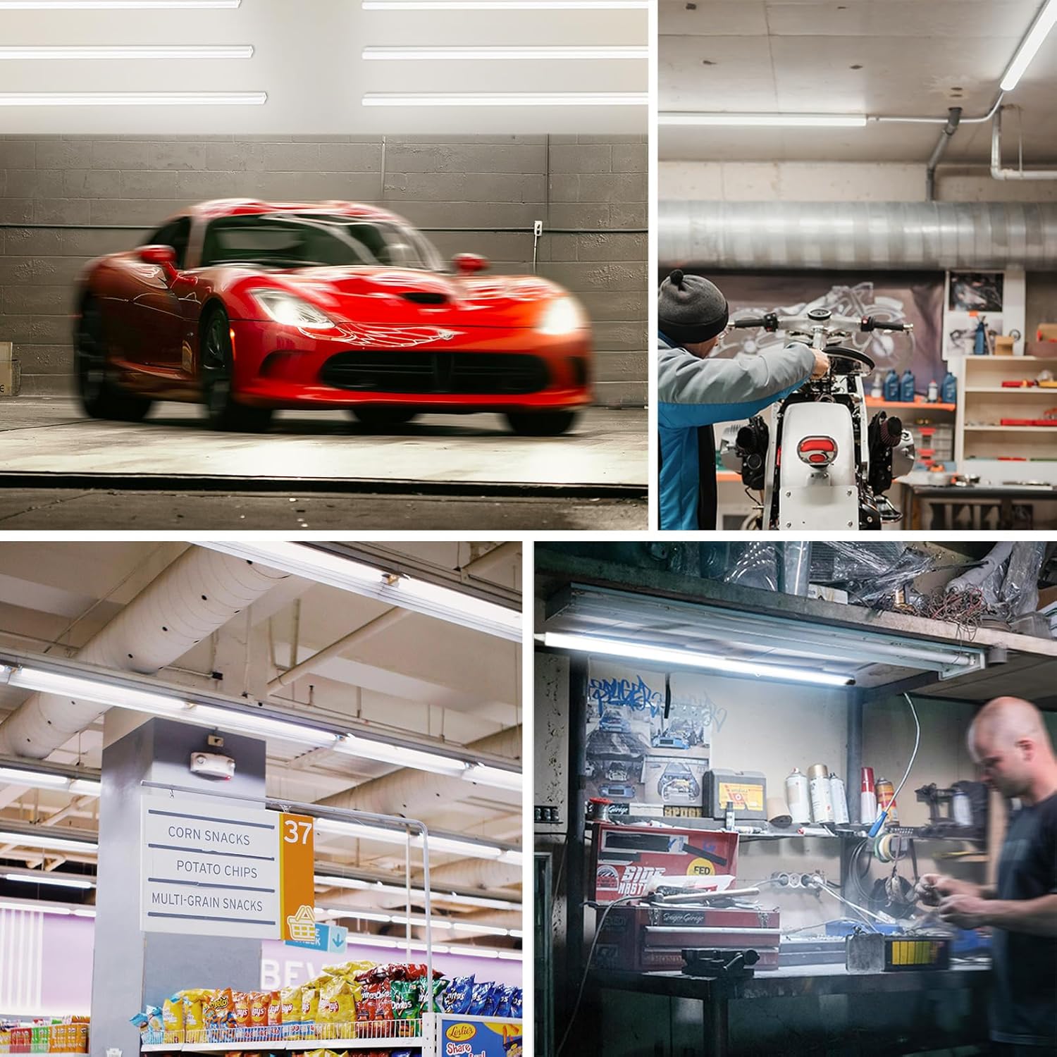 - [Wide Application]: The super bright LED shop lights are suitable for different personal and commercial usage scenes, such as for garage, workshop, utility shop, warehouse, storage room, basement, under cabinet, closet, workbench area, office general lighting, supermarket, barn lighting, etc.