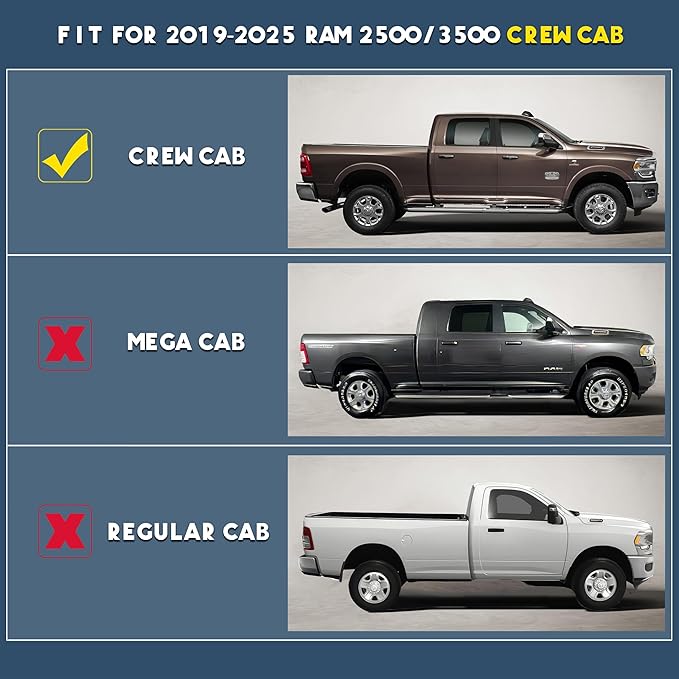 - : Vehicle Service Type Compatible with 2019-2025 RAM 2500/3500 Crew Cab (1st Row Bucket or Bench Seats) Compatible with 2019-2025 RAM 2500/3500 Crew Cab (1st Row Bucket or Bench Seats) See more