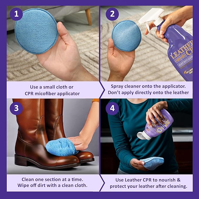 - VERSATILE USAGE: Clean and revitalize your leather furniture, car seats, jackets, purses, boots, shoes, and even equestrian tack. Use our leather cleaner for boots, sofa leather cleaner, and leather stain remover for car seat for comprehensive care that meets the diverse needs of leather enthusiasts. It's also ideal as a leather purse cleaner for designer bags and an interior leather car cleaner.