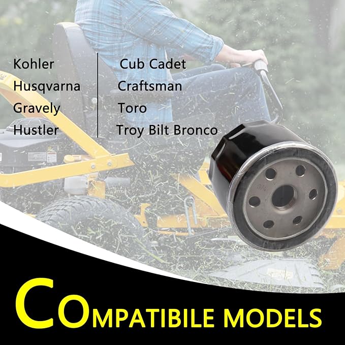 - COMPATIBILITY: Compatible with Kohler engine oil filter, Cub Cadet 1500 2000 XT1 XT2-series, Husqvarna YTH20K46 YTH21K46, Craftsman 42 inch, Gravely, Toro, Hustler, Troy Bilt Bronco mower tractor and more. Please check the applicable model before ordering