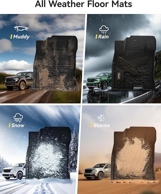 3W Floor Mats Fit for Ford Maverick Hybrid 2022 2023 2024 2025, TPE All Weather Custom Fit Floor Liner Car Accessories 1st and 2nd Row Full Set Car Liners (Only for Hybrid)