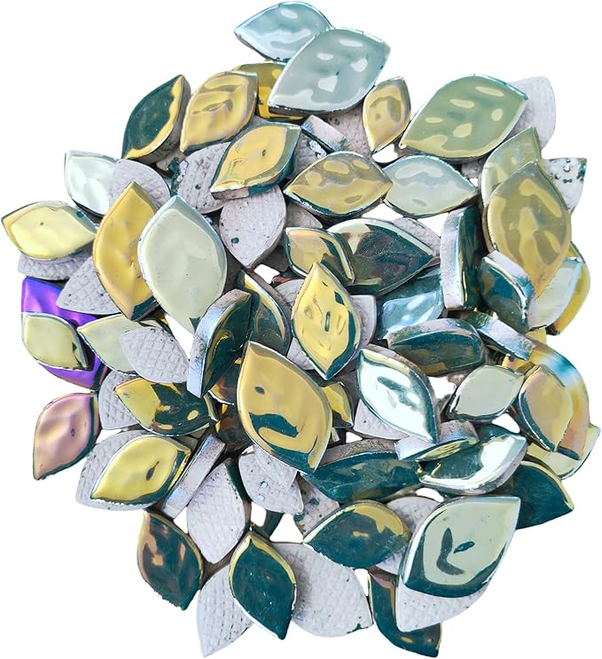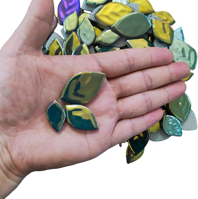 - The Leaves Ceramic Mosaic Tiles 3 Size: Large Length:4cm/1.57inch; Medium Length:3cm/1.18inch;Small Length 2.5cm/0.98inch;Thickness: 0.5cm/0.2 inch;About 105 PCS Leaves Mosaic Tiles Random Size in a PP Bag