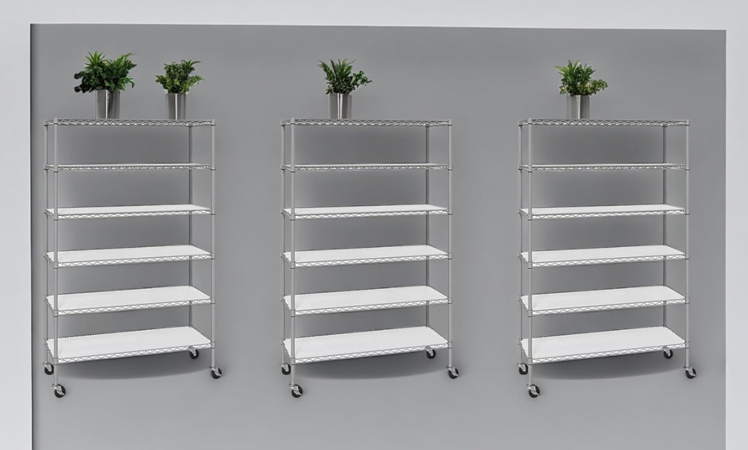 Organize in Style with The Members Mark 6-Tier NSF Heavy Duty Wire Shelving, 47.75" W x 18" D x 75.5" H (Granite, 3 PACK)