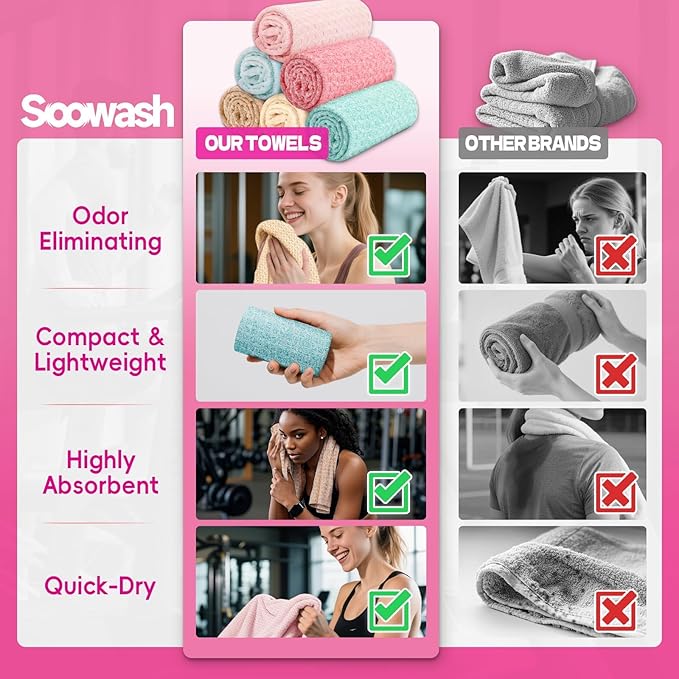 - 【ODORLESS】: Our towels use negative ion technology to inhibit sweat left on the towel after exercise, thereby reducing the odor they cause.Made from a mixture of different fibers. This fiber not only has lightness, moisture absorption, and quick drying , but also has the skin-friendly, silky feel, and antistatic properties.
