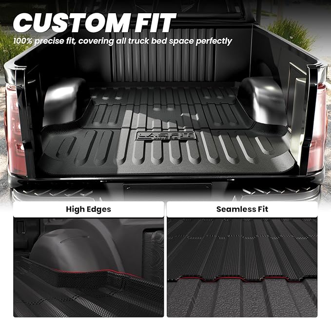 - FIRM YET ENVIRONMENT FRIENDLY- LASFIT bed mat used elastic TPE (Thermoplastic Elastomer). This material are allowing our bed liner last long, way more durable and the deformation can be easily restored.