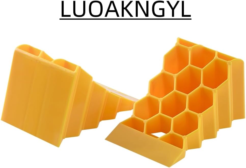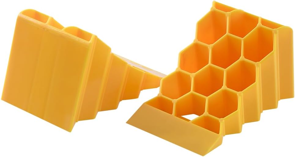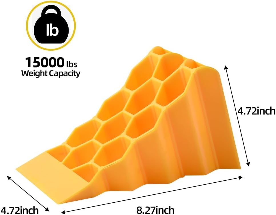 - Designed with Durable hard construction hard plastic. It has a lightweight design, very easy for storage, and transporting, unlike the heavy rubber chocks. You can easily store the chock block in your trunk, or toolbox