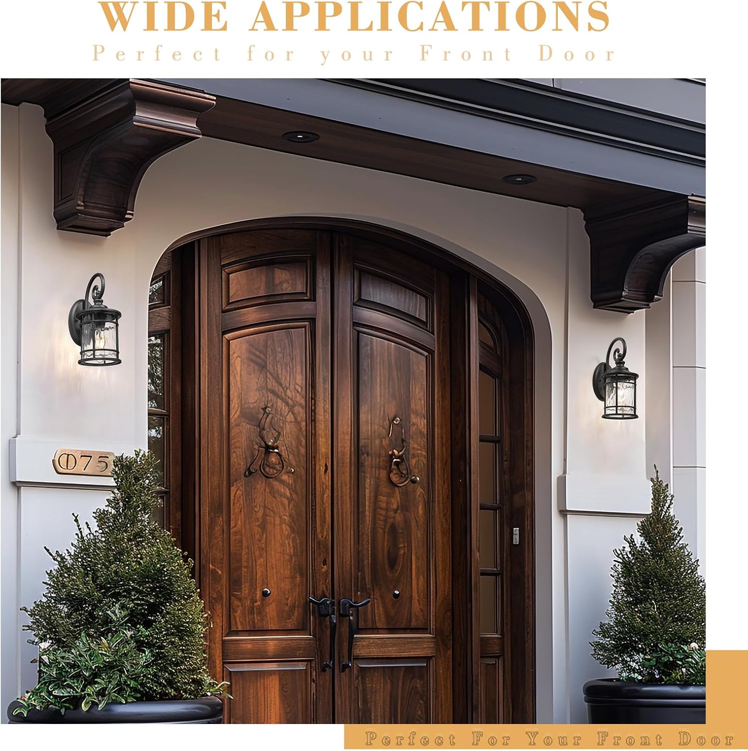 Emliviar Outdoor Lights for House, Outdoor Sconce Lights with Water Ripple Glass in Black Finish, XE229BWG-S BK