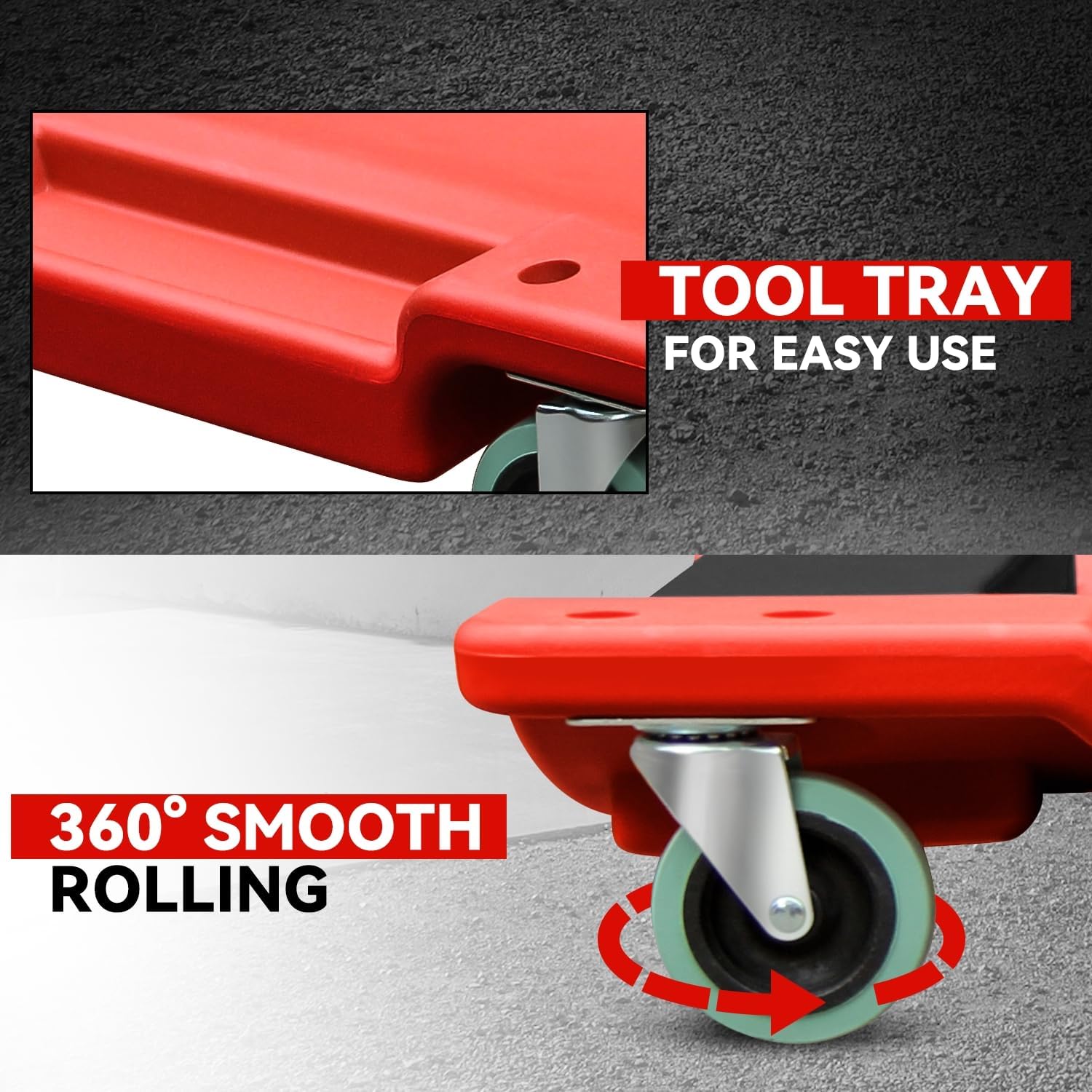 Auto Dynasty 40 Inches Mechanic Creeper, Automotive Garage Repair Low Profile Under Car Rolling Creeper with Padded Headrest, Plastic, Red
