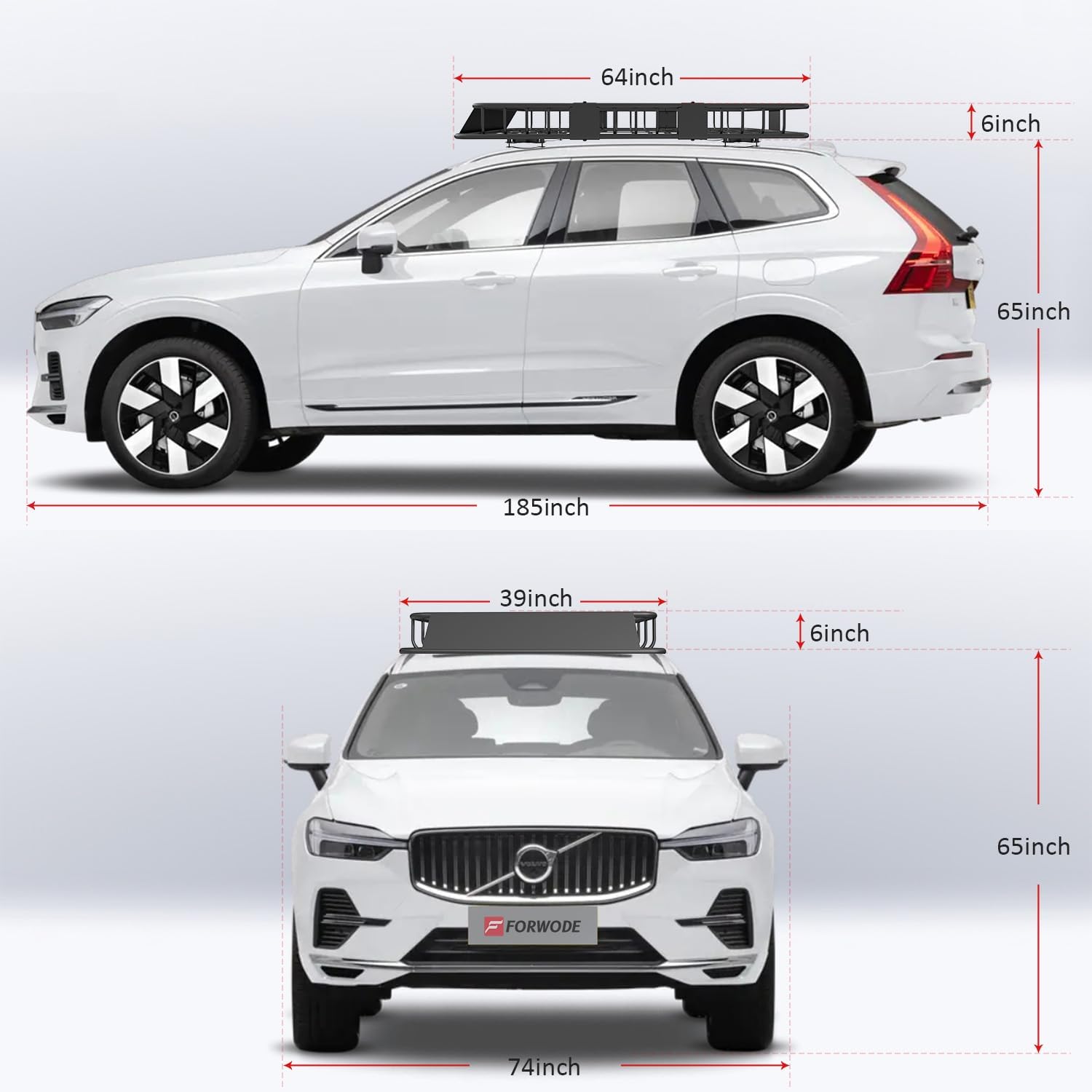 FORWODE Roof Rack Carrier Basket, 64" x 39" Rooftop Cargo Carrier with 250 lbs Capacity, Rust-Proof Steel Heavy Duty Car Top Luggage Basket with Waterproof Cargo Bag for SUV Truck Cars