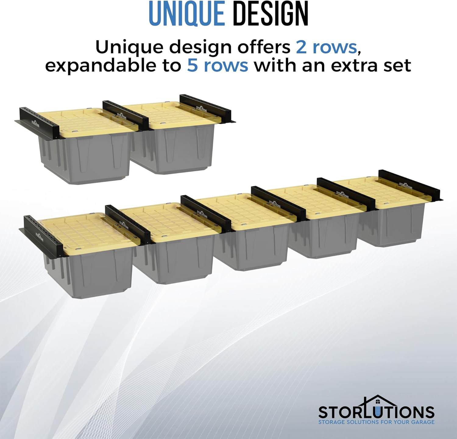 - Versatile Tote Storage Rack: Our tote storage rack is designed to accommodate various storage bins, making it an ideal garage storage system. The garage storage rack ceiling mount offers ease of access to all your stored items.