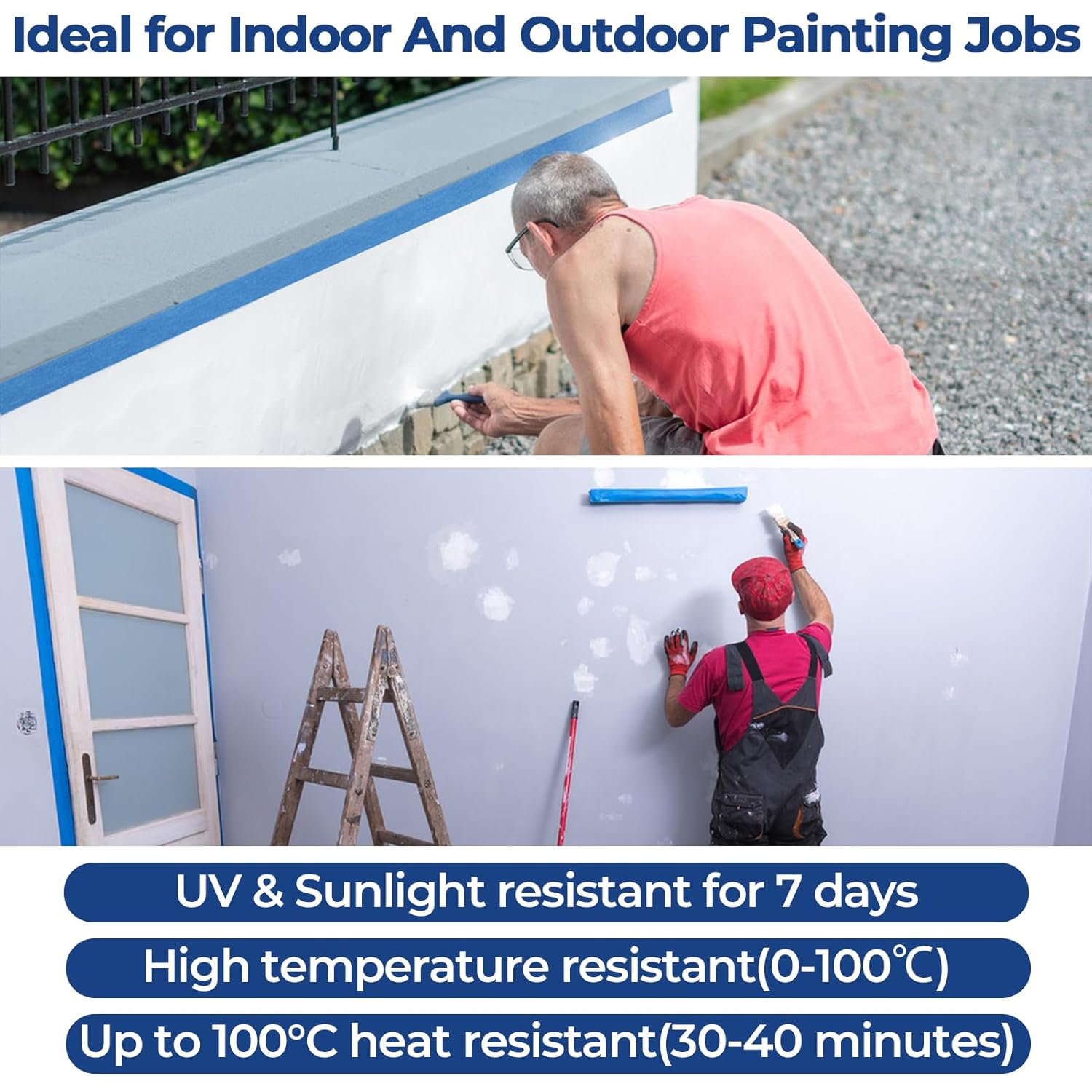 - ššš¬š¢šš®š-š š«šš: Blue painter's tape is made with high-quality pressure-sensitive water-based adhesive and crepe paper, ensuring a residue-free, non-damaging surface to protect your wall. It resists sun and moisture and remains effective on both interior and exterior surfaces for up to 7 days without leaving marks