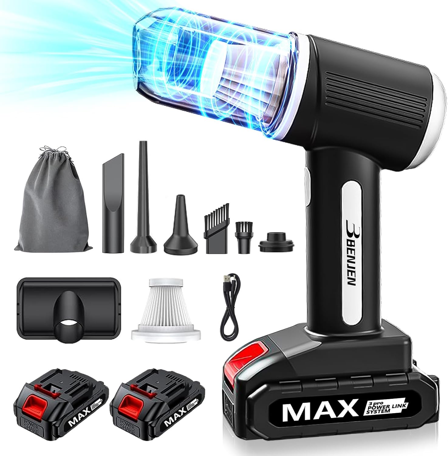 - 30 Mins Long Endurance: The BENJEN wireless car vacuum cleaner adopts a brand-new dual battery design, offering an ultra-long range of up to 30 minutes, which far exceeds that of our peers by 15 minutes. It can easily solve range anxiety and meet your long-term usage needs. With quality assurance, stability and reliability, it allows you to use it with peace of mind