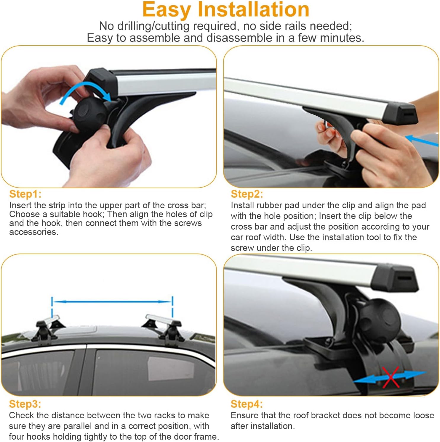 - 【Simple Assembly】No drilling or cutting necessary, and no side rails are needed. Our car roof rack comes with all necessary installation tools, ensuring quick and easy assembly and disassembly in just a few minutes. This hassle-free setup allows you to start your adventure promptly.