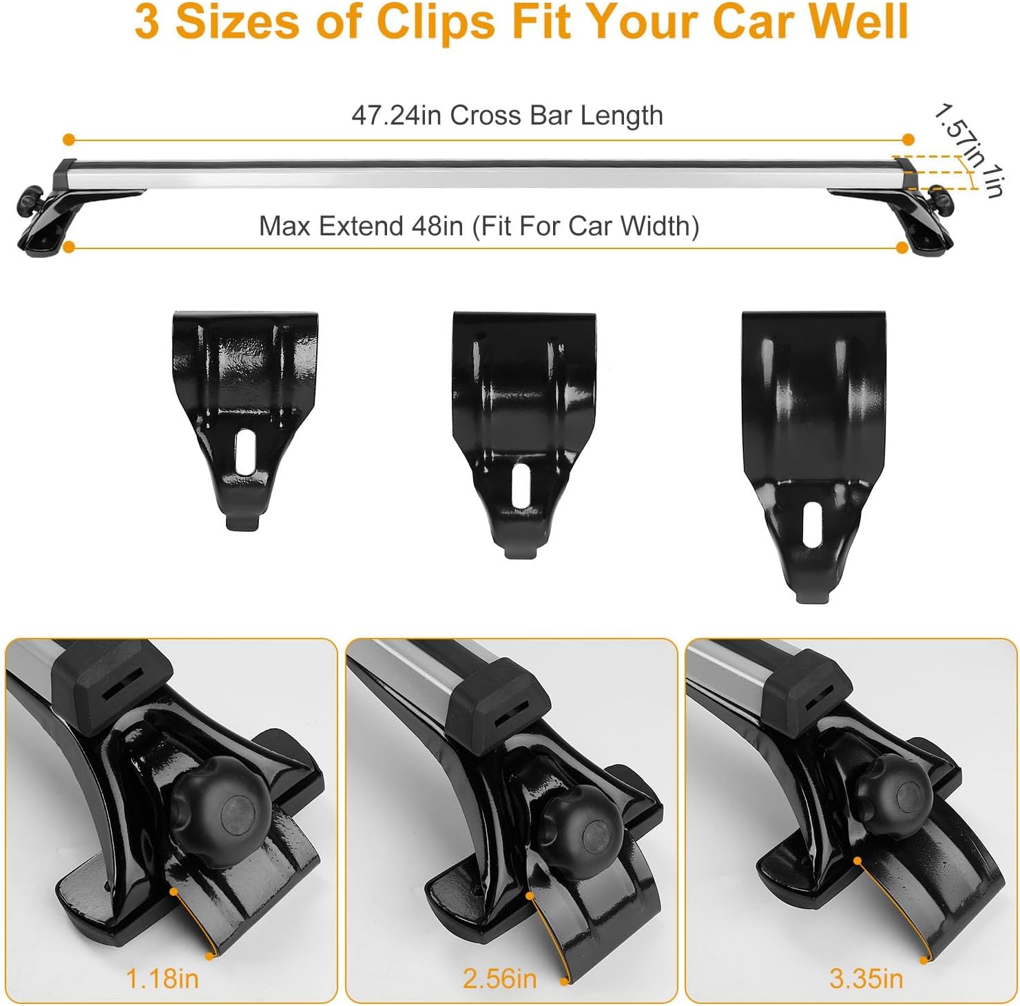 - 【Universal Fit for Most Bare Roofs】This universal roof rack is universal fit for vehicles with bare/smooth roofs, width less than 48 inches. Not compatible with vehicles featuring raised rails, flush rails, fixed points, or factory-installed roof racks. Please verify compatibility with your vehicle before purchasing.