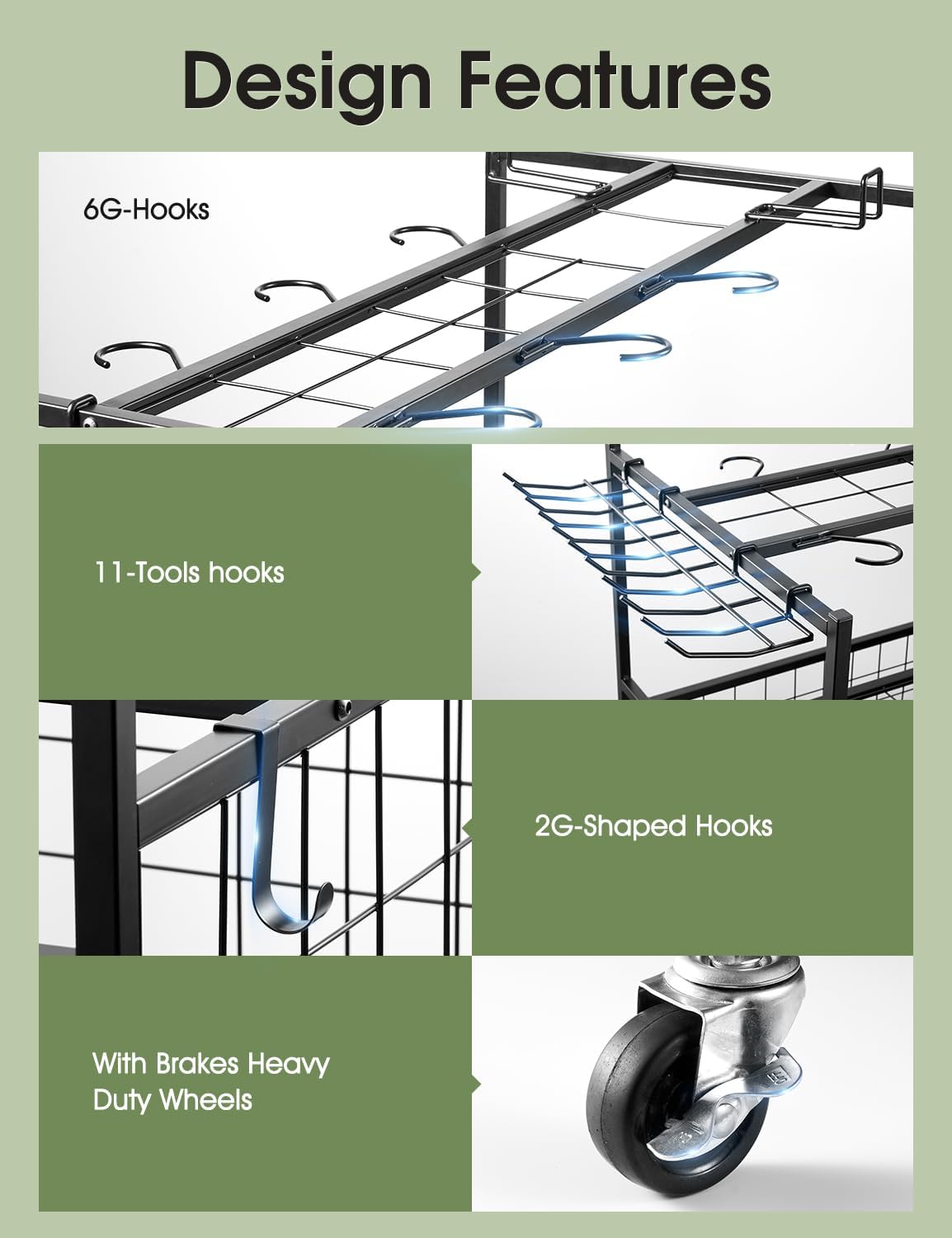 - 【Built to Handle Heavy Loads】 Constructed from high-quality carbon steel, this garden tool organizer supports up to 100 lbs. The rust-resistant baked enamel finish adds durability and a polished look for long-lasting use