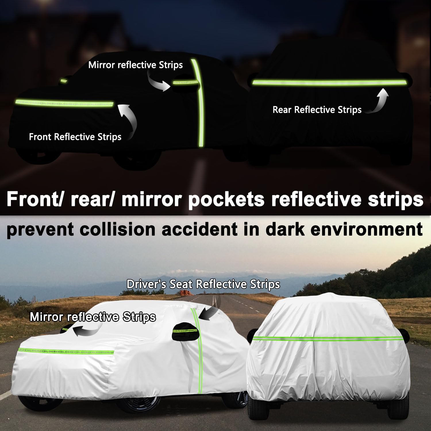 - Easy Access Zipper - ① Driver door classic zipper design for easy access and convenience while using the car cover. ② 6pcs reflective strips, Remind other people at night. ③ 2 Mirror pockets make the cover fit your vehicle better. ④ Outdoor full car cover equipped with three windproof straps at the bottom to protect your sedan car cover from blowing off on windy days. ⑤ Elastic hem ensures a custom fit and keeps the car covered securely in your car. ⑥ 2PCS antenna protection kit is included in every purchase.