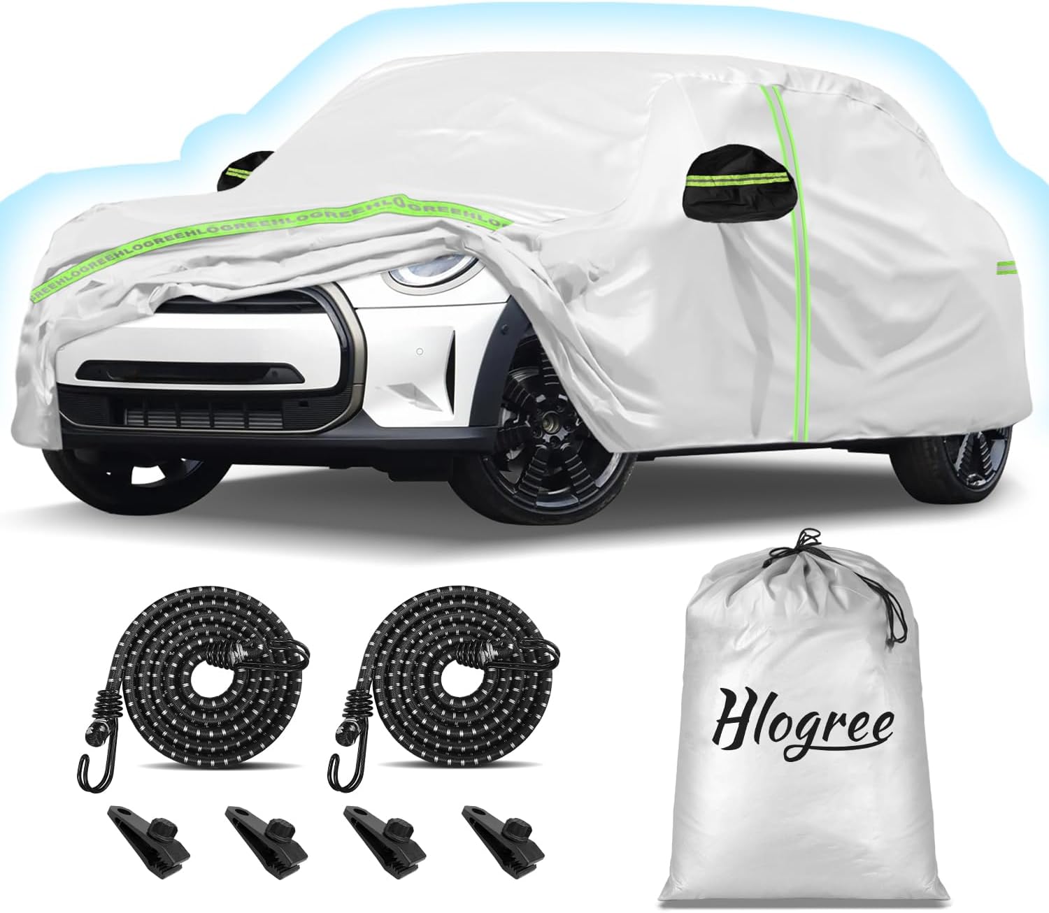 - What You Get - ① 1 x car cover for 2014-2025 mini cooper 4-door ② 1 x storage bag ③ 2 set x Car Cover Bungee Cords & Clips ④ 2 x antenna grommet kits ⑤ User Instruction. Tips: Refer to the white " Front " tag to arrange the cover installation. When the cover is not in use, you can use the storage bag to store it inside the car's trunk. If you have any questions about the size and the installation, please contact us at any time.