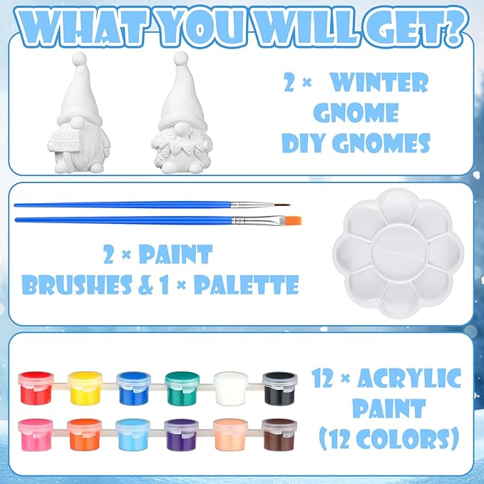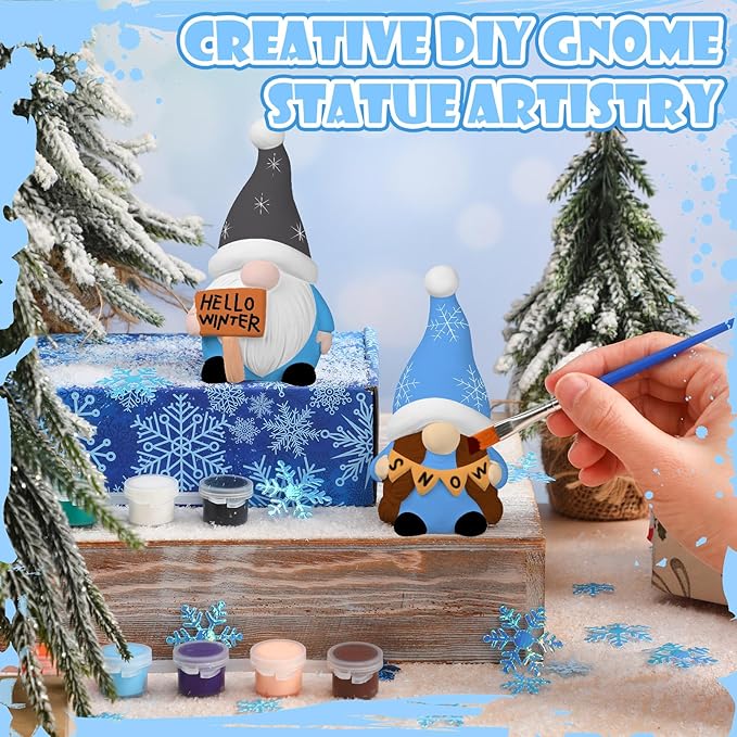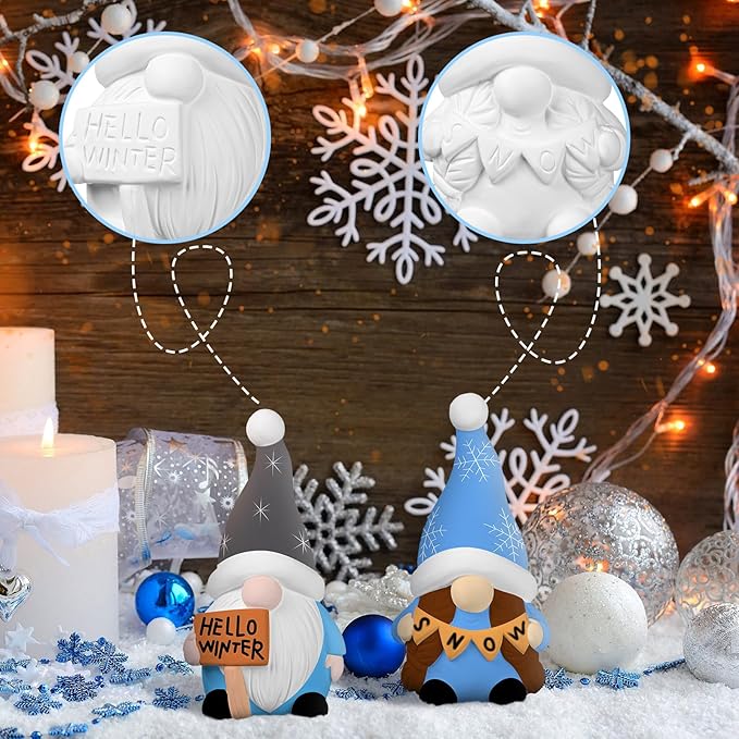 Seenelling 2 Pack Winter Gnomes Ready to Paint Your Own Gnome Statues 4'' DIY Winter Unpainted Ceramics Figurines Kit Blank Paintable Ceramics for Art Crafts Winter Christmas Decor