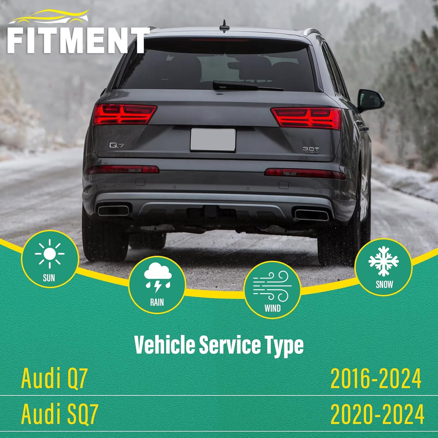 - [FITMENT1]: Replacement for 2016 2017 2018 2019 2020 2021 2022 2023 2024 Audi Q7 27inch + 20inch front with 15inch rear windshield wiper blades.