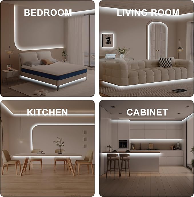 - Bright COB Strip Light: 16.4ft High density white led strip with 1600 leds makes light more soft and uniform brings more comfortable lighting mood, easy to light up dark area
