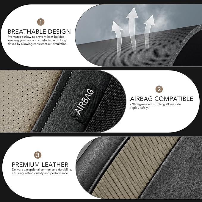 - AIRBAG COMPATIBLE - 270-degree OEM airbag stitching seam with safe seam technology allows the cover stitching to separate for side airbag deployment in the event of an accident.