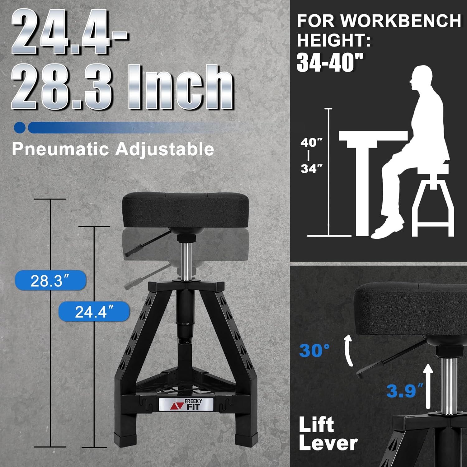 - 【Not Too High or Too Low. ADJUSTABLE HEIGHT】24.4-28.3 inch. This adjustable stool is equipped with a pneumatic adjustable mechanism, allowing easily adjust the height from 24.4 to 28.3 inch. This height adjustment allows you to be at a height that is neither too high nor too low, allowing you to work easily and comfortably