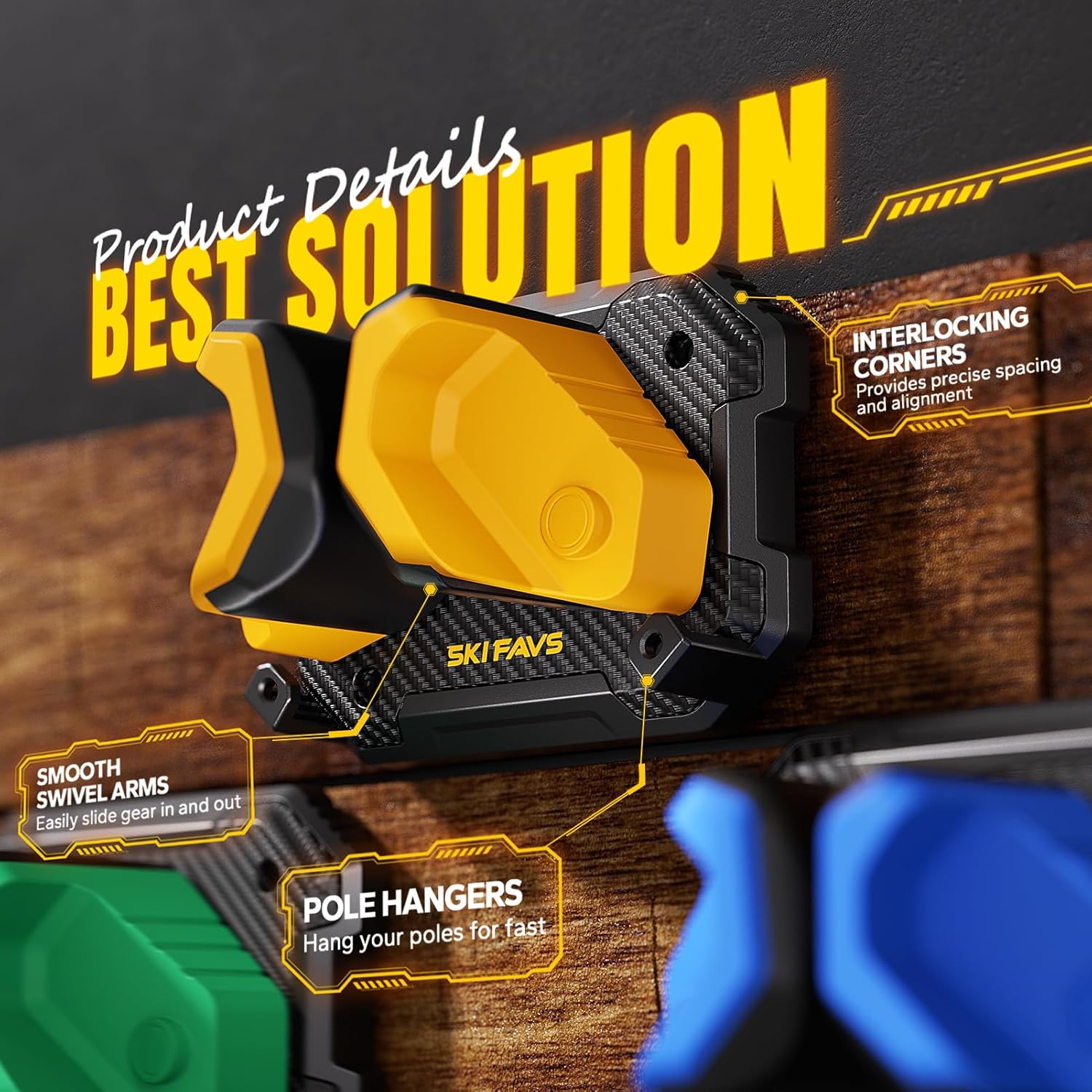 - Multifunctional and Space-Saving Storage: Skifavs ski holder is designed for vertical storage, allowing you to save valuable garage space. Say goodbye to cluttered ski storage and welcome a well-organized setup. Neatly organize your home, garage, cabin, or ski resort. Take up a small amount of space and makes a great display of your beautiful skis. No more piled up skis in a corner!