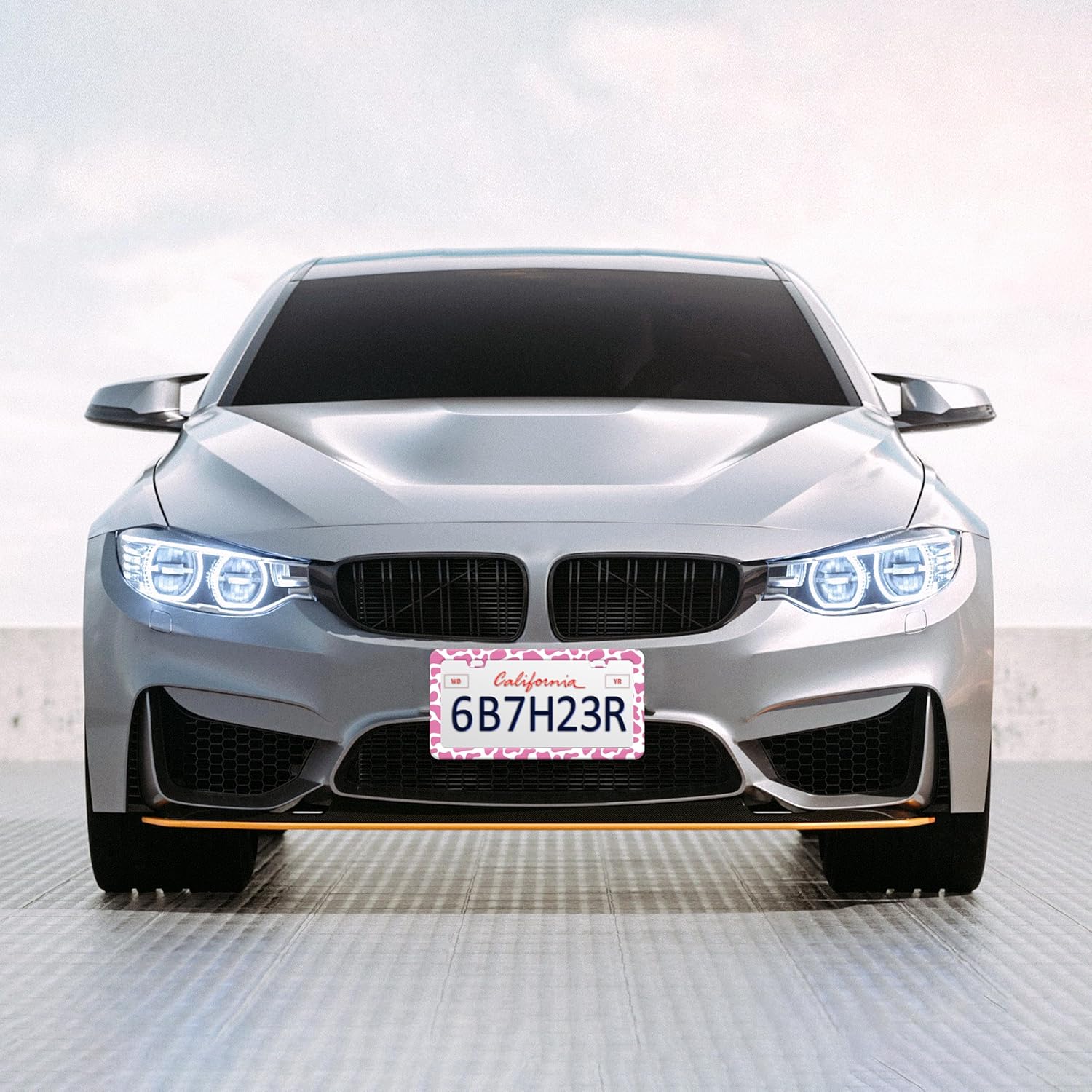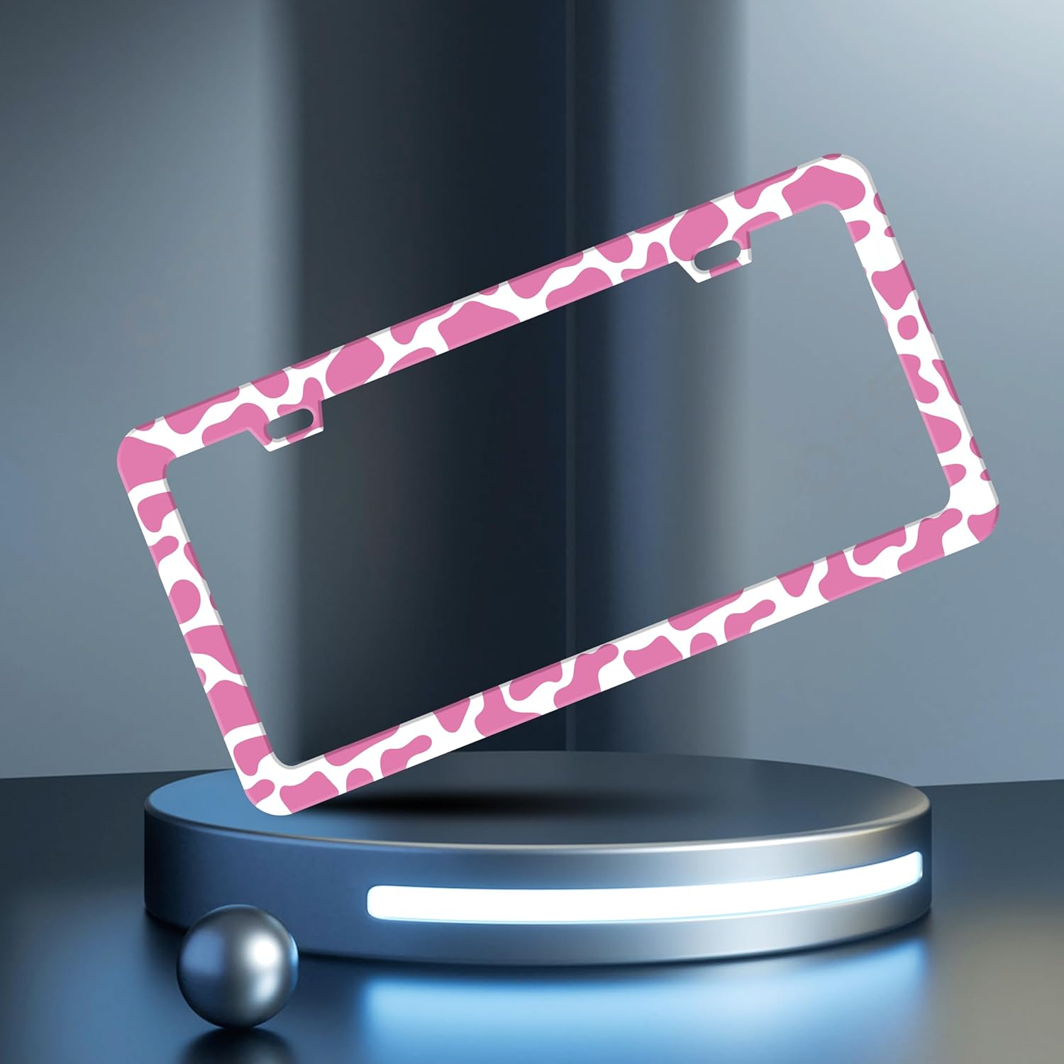 Pink Cow Print License Plate Frame Animal Texture License Plate Frames Personalise Stainless Steel Funny Design Compatible with Standard License Plate Holder for USA Canada 6 X 12 Inch with Screws